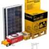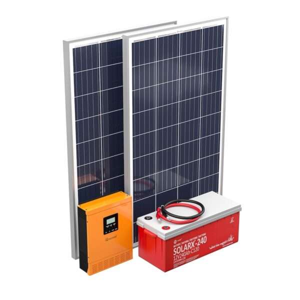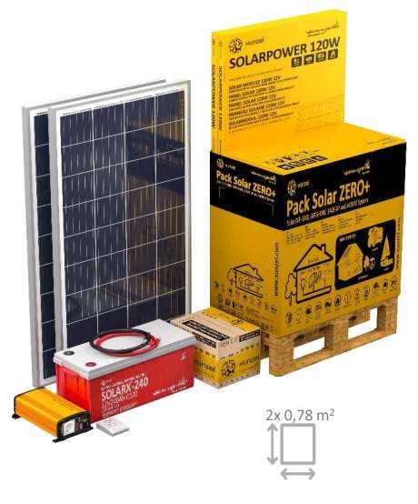 • Sistema solar fotovoltaico completo projectado para electrificação A+++ e iluminação LED com uma potência máxima instalada de 1kW e saída USB 5V-2.1A.