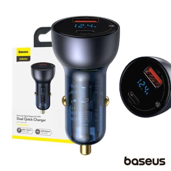 Adaptador Isqueiro C/ Display PPS USB-A/USB-C QC 65W BASEUS