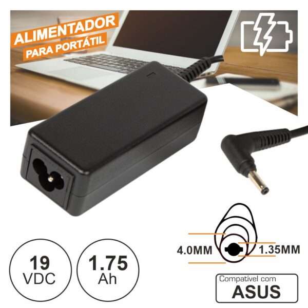 Alimentador P/ Asus 19V 1.75A 33W 4.0×1.35mm