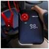 O ecrã grande facilita a monitorização da operação e do estado do dispositivo. O conjunto inclui pinças, mangueira de ar, adaptadores de válvula, cabo USB-C e uma bolsa de transporte, tornando o Forever JS-400 uma solução prática e completa para qualquer condutor.