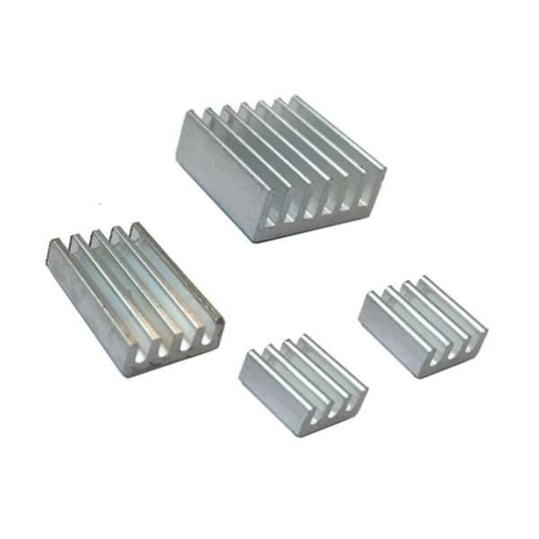 Kit de dissipador de alumínio usado para dissipação do calor dos chips no Raspberry Pi.