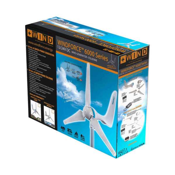 – Turbina eólica especialmente concebida para carregar baterias solares de ciclo profundo.