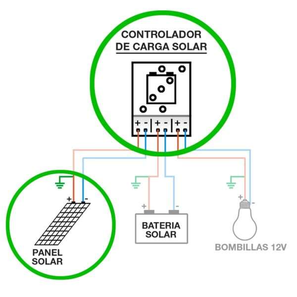 Protecções: sobretensão, polaridade inversa (painel ou bateria) e sobrecarga e curto-circuito na saída das cargas CC.
