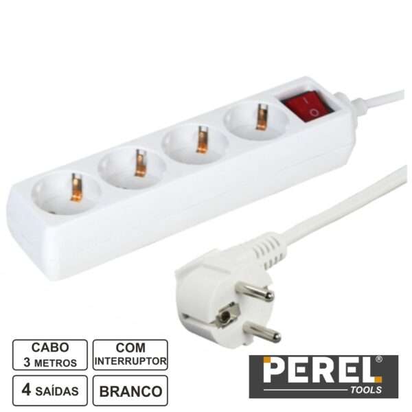 TOMADA EL?TRICA C/ 4 SA?DAS INTERRUPTOR 3M BRANCO PEREL