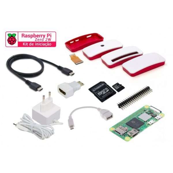 Kit completo com tudo o que é necessário para iniciar seu projeto Raspberry Pi Zero 2W.